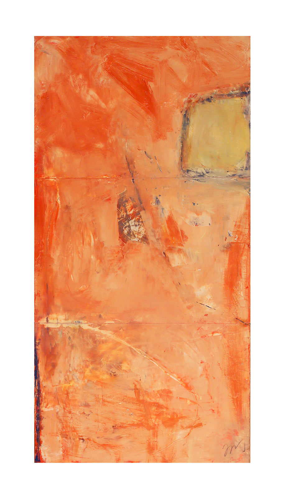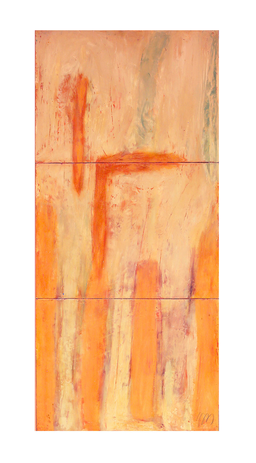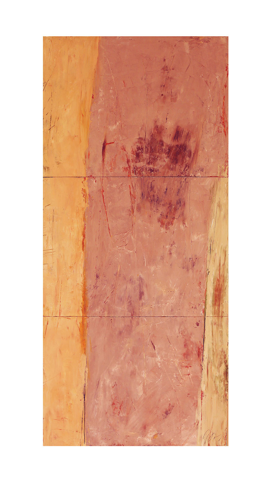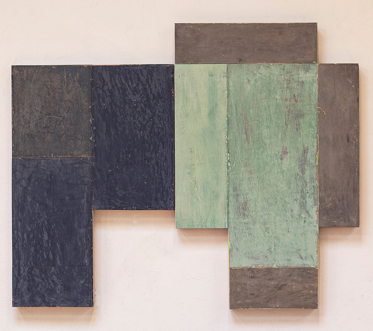 In applying the plaster to the wood, Fels works with two ancient Italian painting traditions. The fresco technique, historically applied to plaster wall surfaces, is cojoined in these pieces with traditional poplar panel painting. Thanks to its stability, poplar has been employed for Italian panel paintings for many centuries. Fashioning the pieces from sections of wood, the work refers to the modular form of altarpieces, albeit without iconography. Viewing the act of painting as meditation, Fels has spent years looking at altarpieces in Europe and Asia.